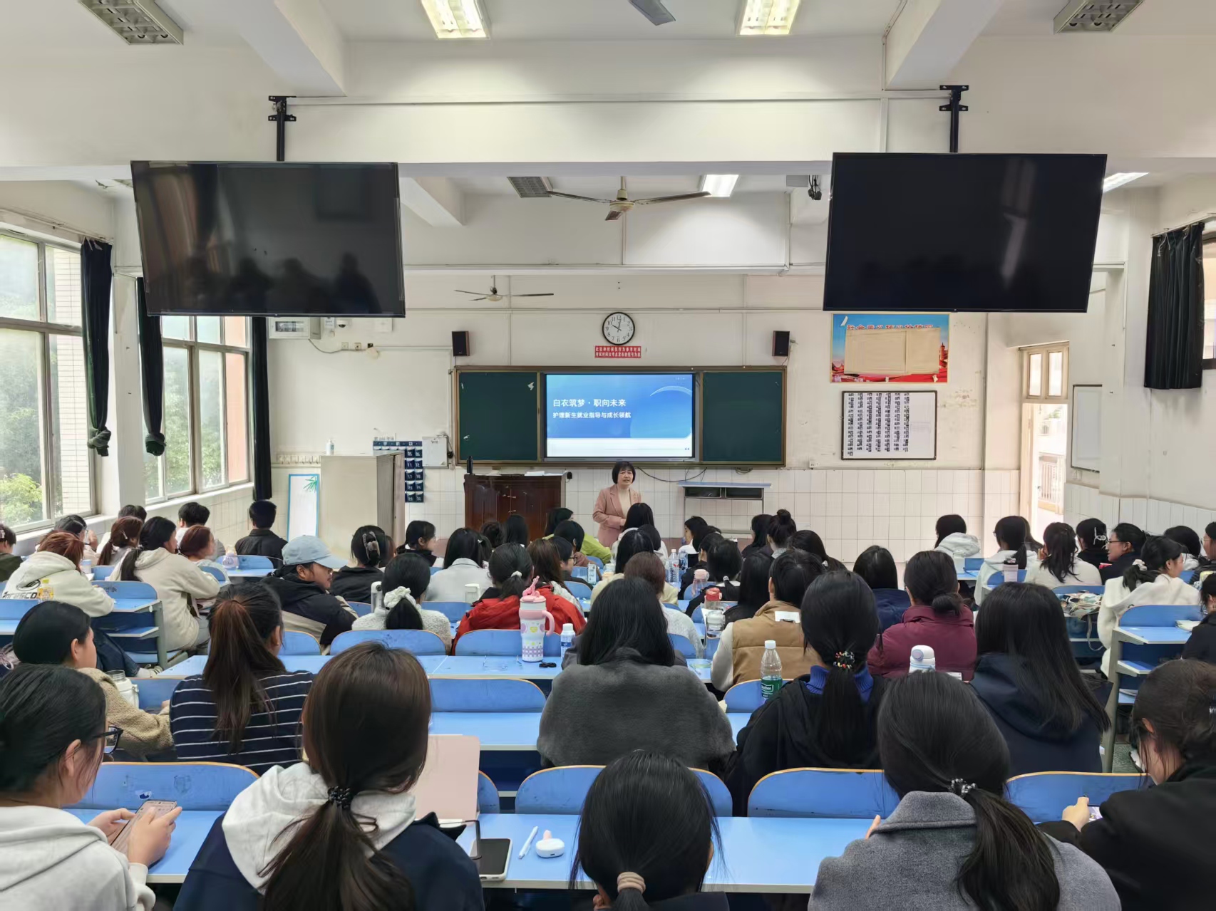 为帮助25级新生科学规划学业,促进未来顺利就业和职业发展奠定坚实基础,10月9日-18日,护理系书记闫珂深入25级新生各班级开展“白衣筑梦,职向未来”就业指导与成长领航专题讲座。