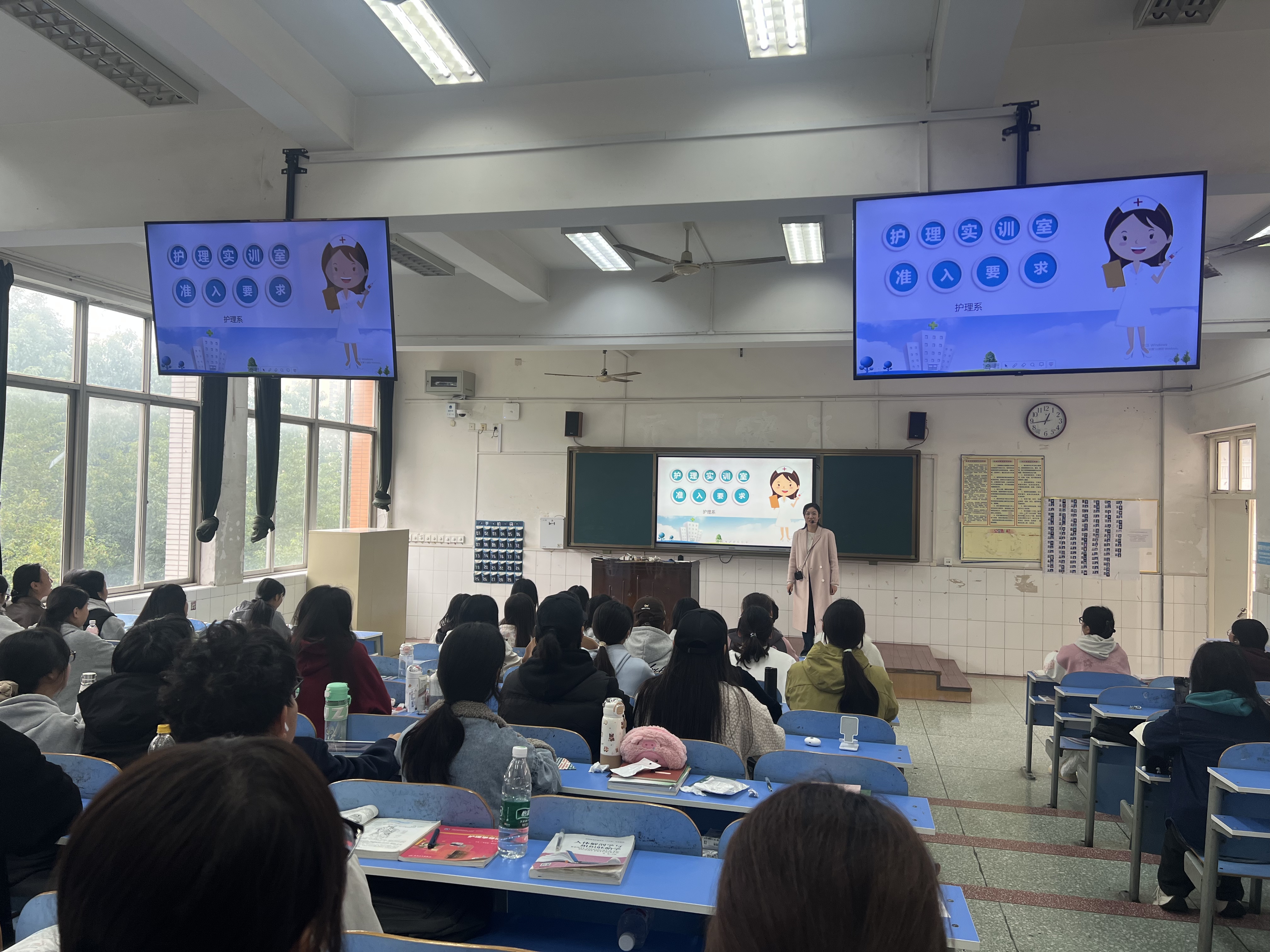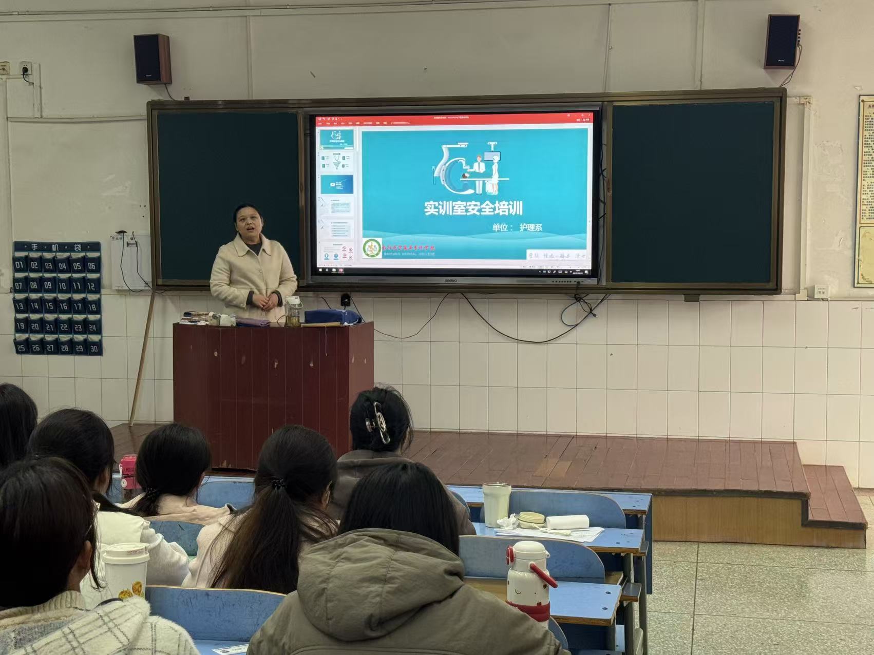 为深入贯彻党中央、国务院关于安全生产的决策部署,落实河南省高校实验室工作研究会《关于开展“河南省高校第五届实验室安全文化宣传月” 活动的通知》(豫高实【2025】5号)文件要求,进一步强化护理系实训室安全管理,提升新生安全素养与规范意识,2025年10月29日,护理系面向25级12个新生班,开展实训室安全知识与准入规范专题培训。此次培训由实训室教师与基护教研室教师联合筹备,系领导全程统筹支持,确保培训内容贴合政策要求、符合教学实际。