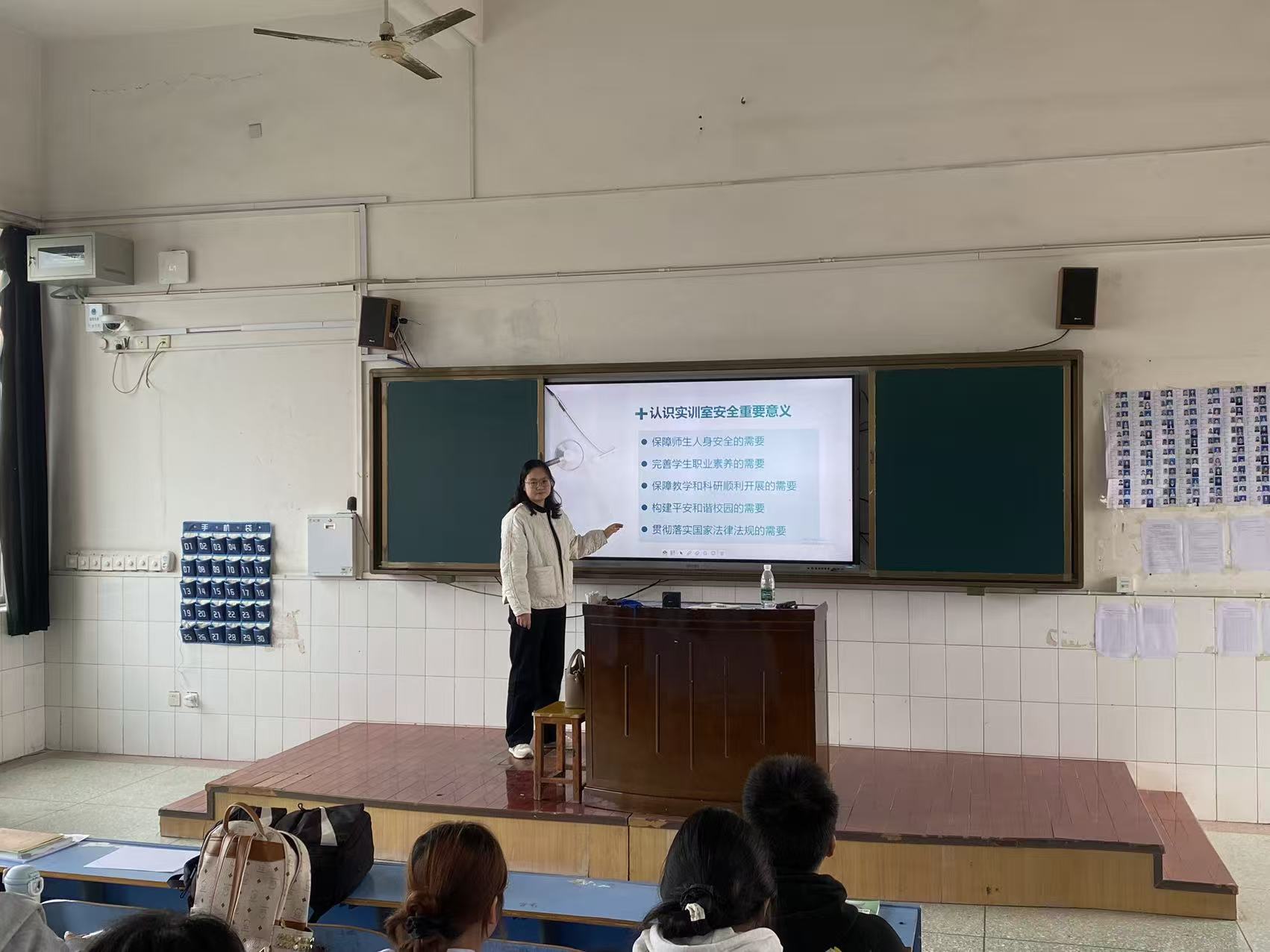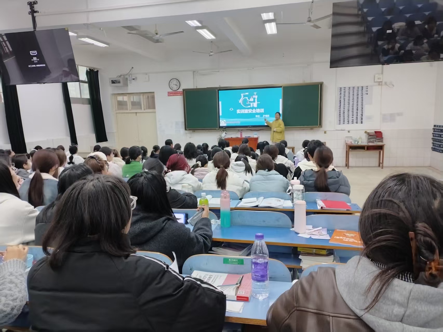 培训中,授课教师通过课件讲解、图片演示等直观方式,重点普及实训室准入要求(含着装规范、考勤登记、用物归置等)、安全管理制度、仪器设备规范操作、消防安全、触电与锐器伤应急处置等核心内容,清晰拆解应急预案与处理流程,确保内容通俗易懂、重点突出。