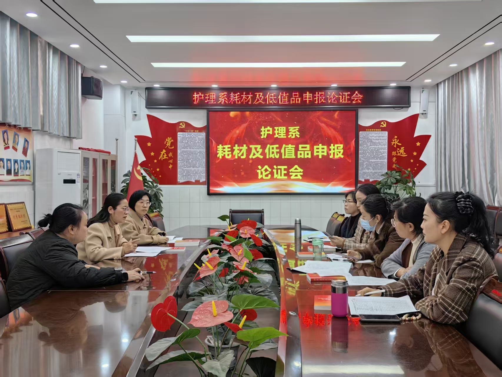 论证环节中,各位老师结合临床实践与教学经验,对物品的上报情况提出专业意见。经过充分讨论,大家一致认为,本次购置方案符合护理系教学所需,种类数量合理,建议尽快推进采购流程。