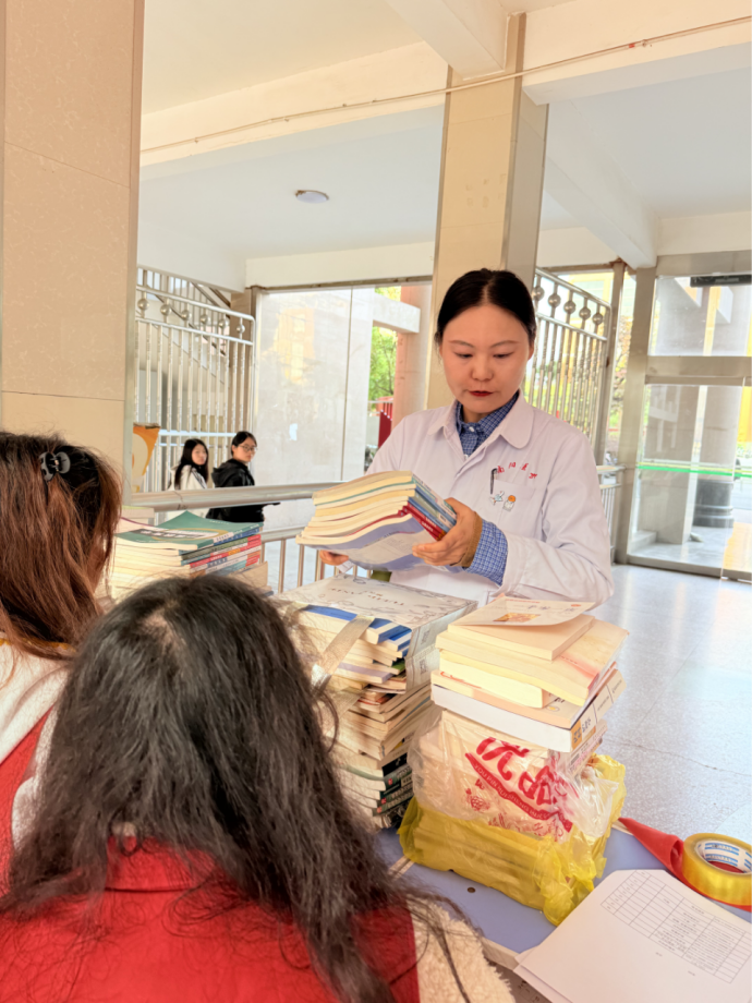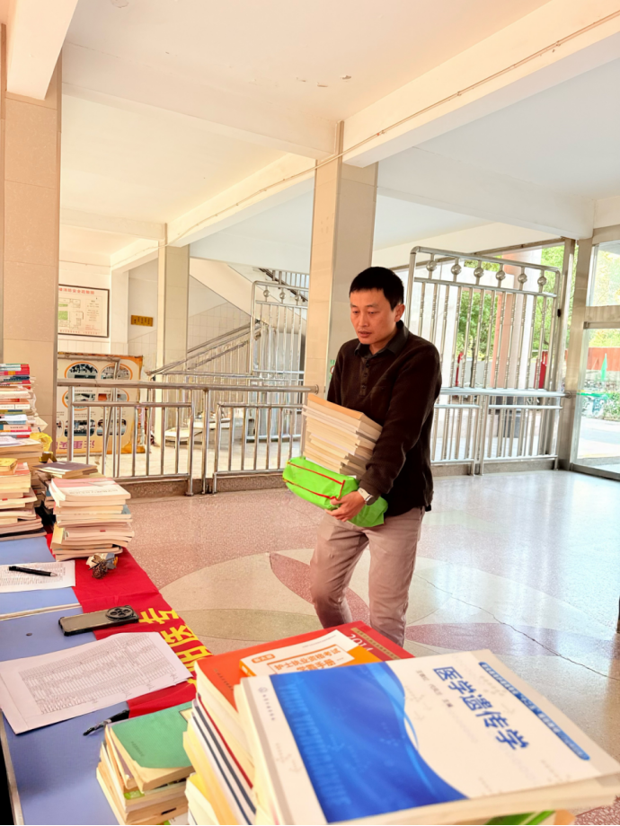 活动现场,护理系党员教师们率先垂范,教职工们纷纷将精心挑选的书籍送到捐赠处。护理系学管党支部的志愿者们对教职工所捐赠的662本图书进行了认真收集和整理,捐赠书籍涵盖了医学护理、人文社科、文学艺术等多个领域,既满足了不同学生的阅读需求,也为学校图书馆注入了新的活力。