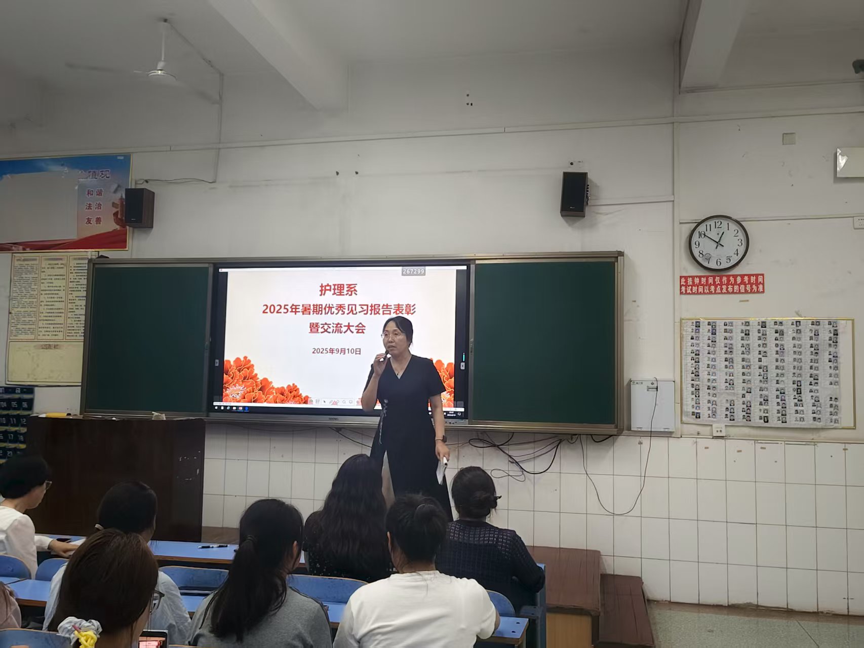 为总结2024级学生暑期见习成果、搭建经验交流平台,助力2025级新生了解护理专业实践,2025年9月10日,护理系成功举办2025年暑期见习汇报活动。护理系副主任赵霞、李艳,教学办主任王靖凯,教学干事张延军出席,2024级与2025级学生代表参加,活动由临床实训室主任李恒晓主持。