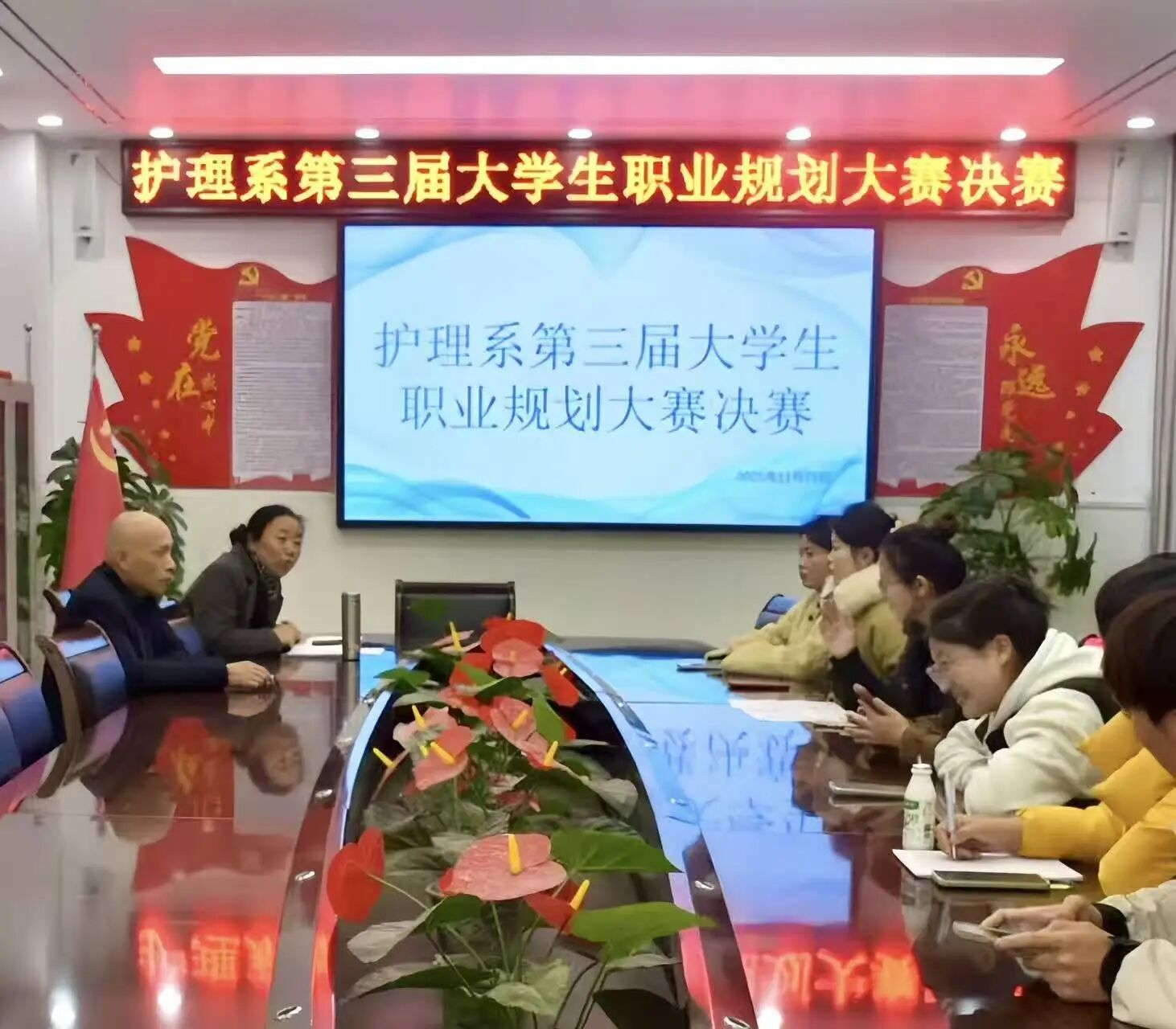 11月21日下午,护理系举行第三届大学生职业规划大赛决赛。马克思主义学院职业生涯与创新教育教研室主任袁欣、护理系党总支副书记李东及辅导员代表组成评委团。