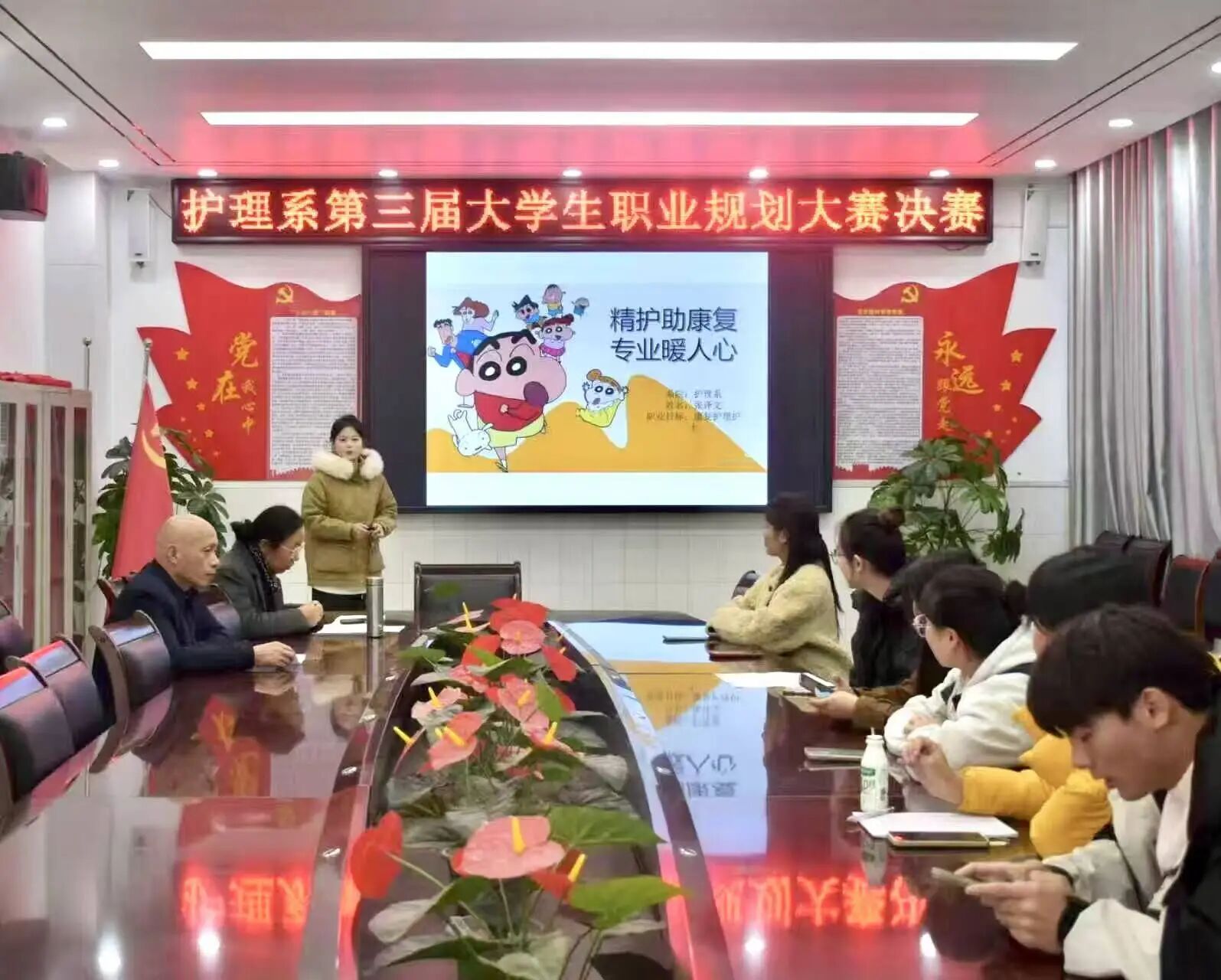 决赛现场,选手们围绕自我认知、职业环境分析、职业目标设定、实施计划制定、评估调整等核心内容,通过 PPT 展示、现场陈述等形式,清晰呈现了各自的职业规划蓝图。选手们结合护理行业发展趋势与自身优势,展现出对护理职业的深刻理解和蓬勃的职业追求。袁欣主任针对选手们的职业目标定位精准度、路径规划合理性等关键问题展开专业剖析,提出兼具针对性与实操性的优化建议,为学子们理清职业发展思路、完善规划细节提供了宝贵指引。